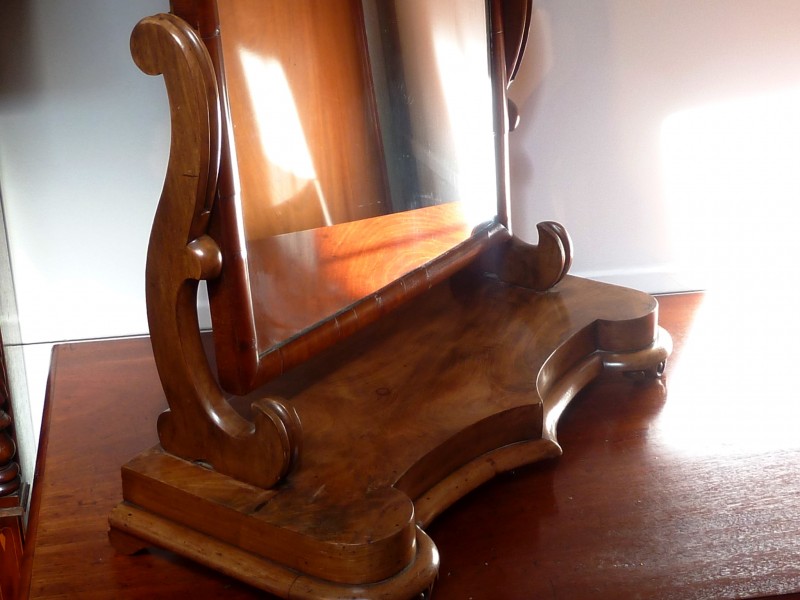Product: MAHOGANY DRESSING MIRROR Material: Inlaid Mahogany Dimensions: 27" Wide x 31" High x 12" Deep Condition: Good Stock Ref: F003